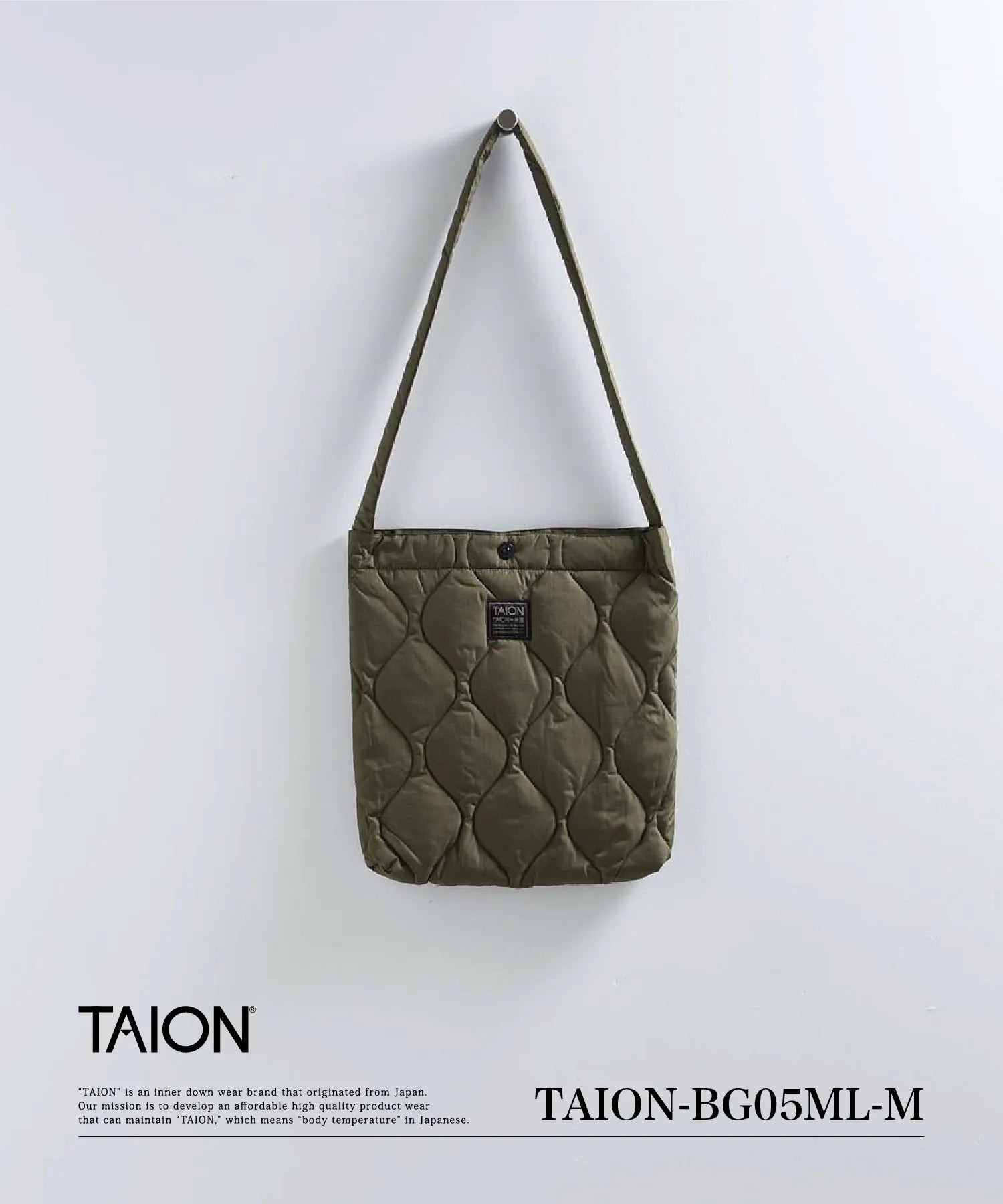 A crossbody down bag from TAION’s MILITARY LINE, combining functionality with a rugged, stylish look.