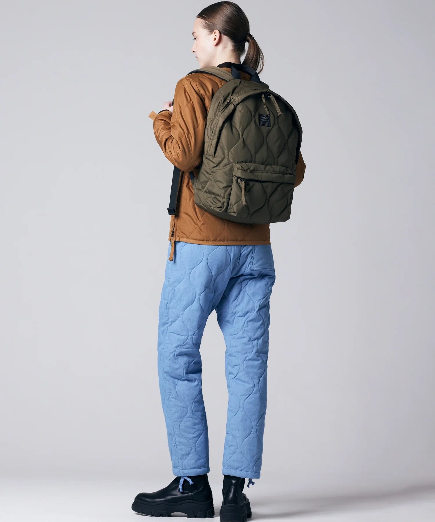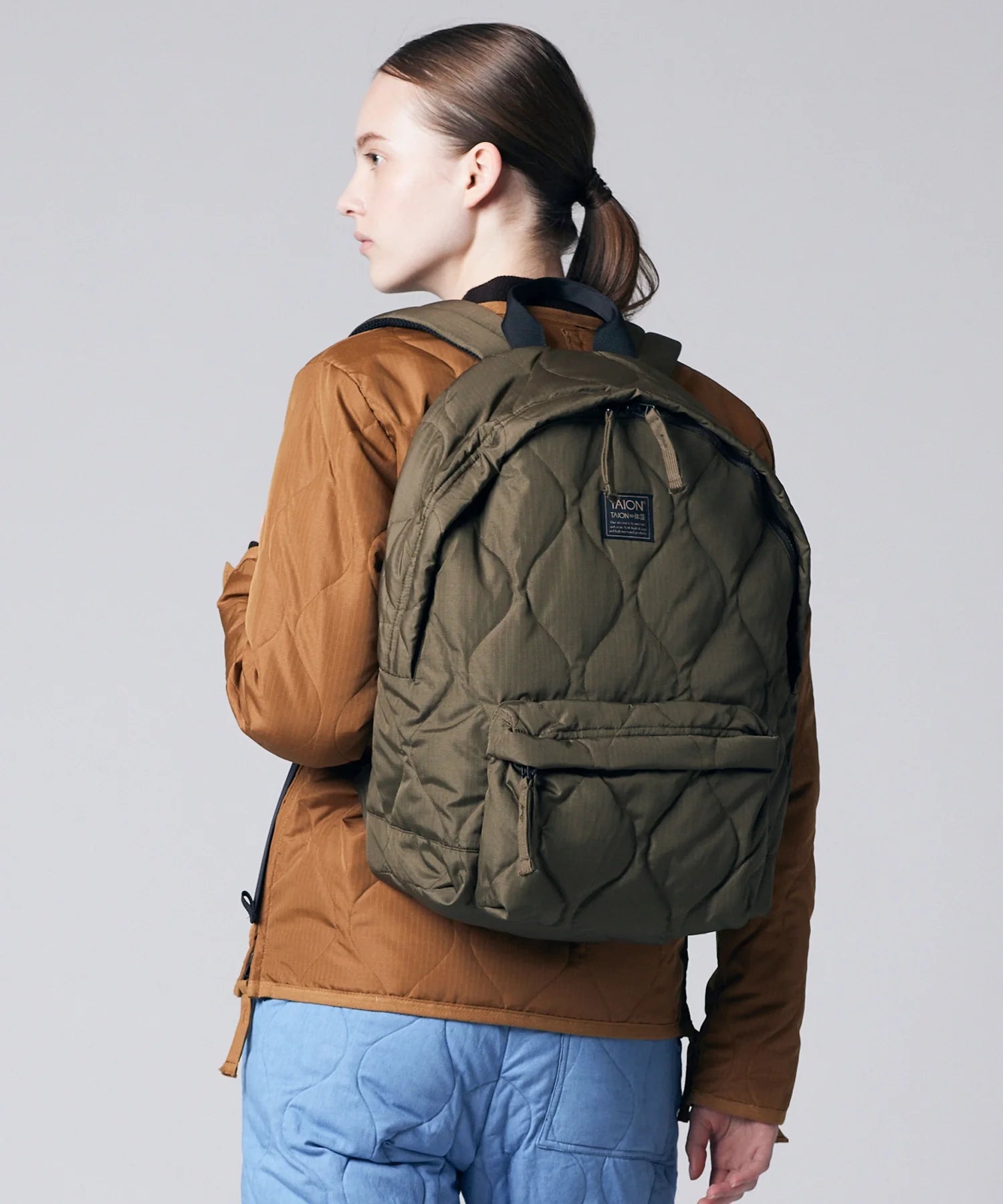 A down backpack from TAION’s MILITARY LINE, designed with both practicality and comfort in mind.