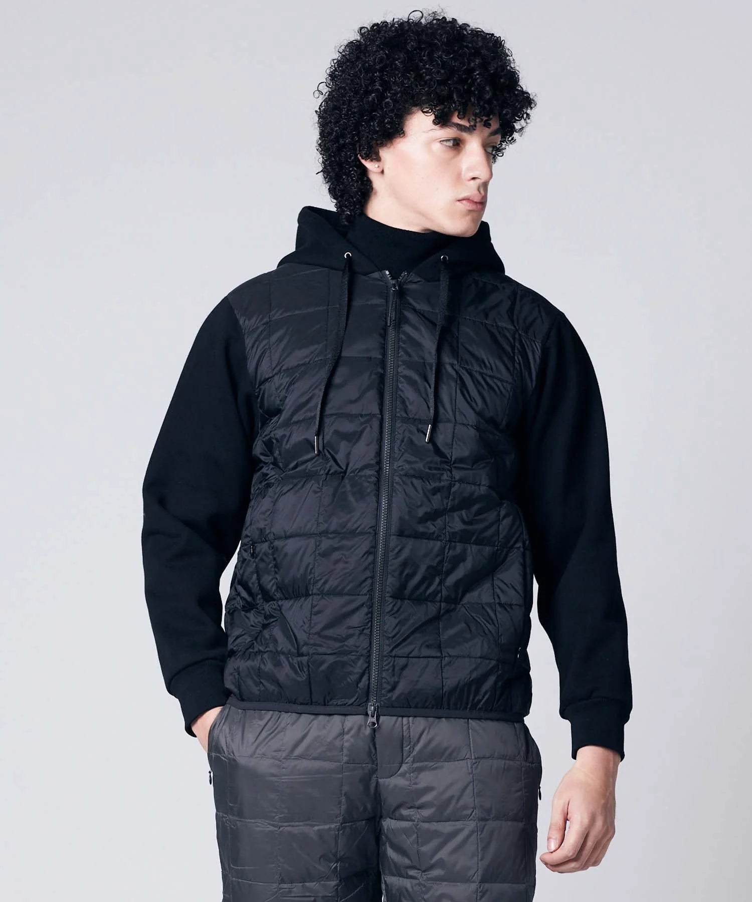 Experience a new level of warmth and ease with this unique “sweat × down” combination.