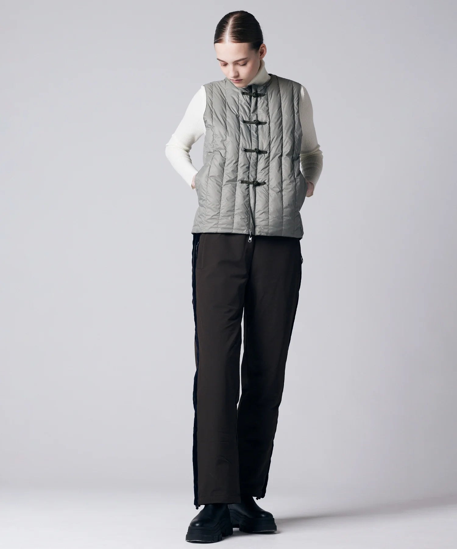 This reversible down vest features elegant Chinese knot buttons that add a refined accent to its minimalist silhouette.