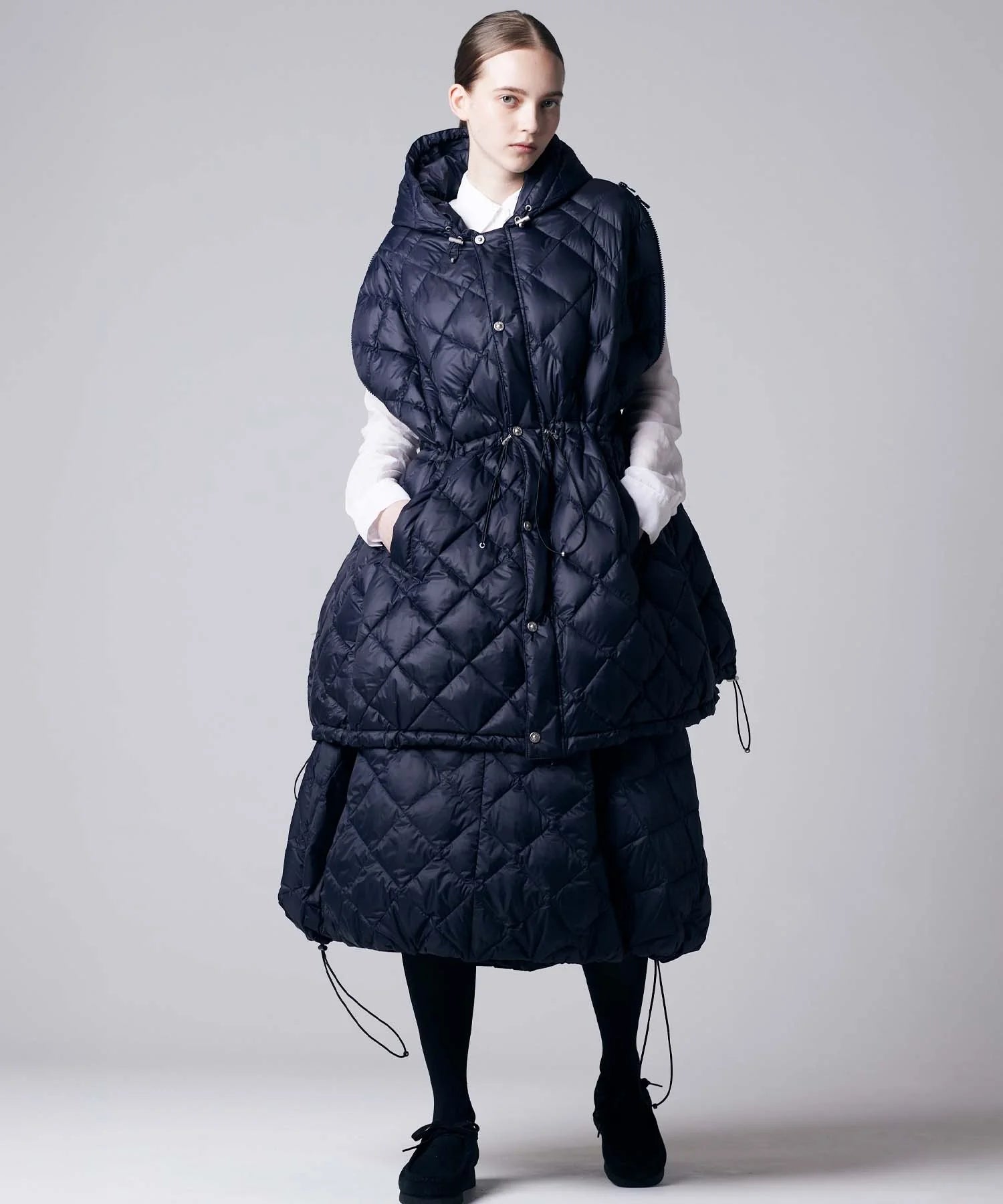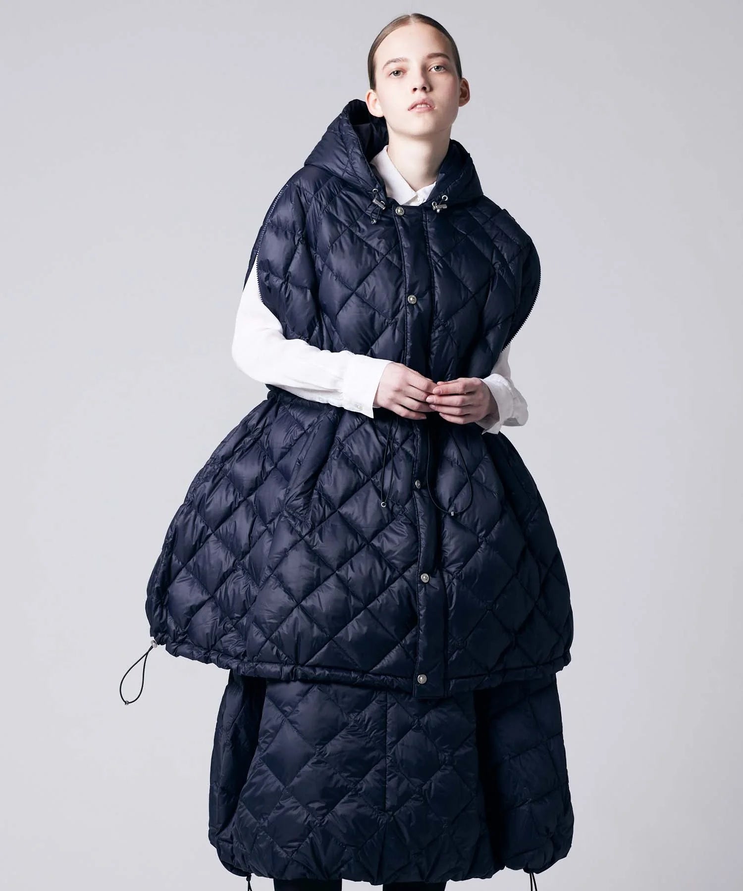 The adjustable drawcord hem allows you to customize the silhouette to suit your style—from a full, airy shape to a more tapered look—expanding your styling possibilities.