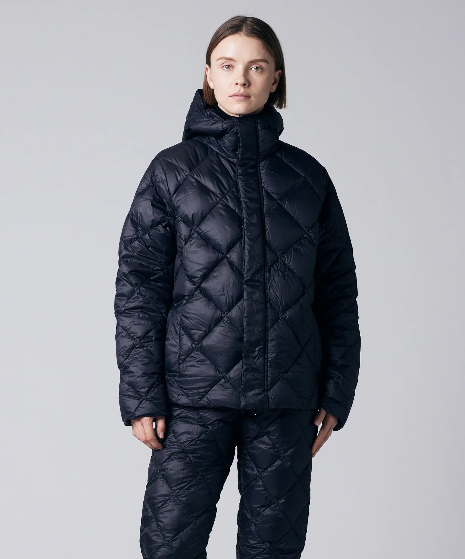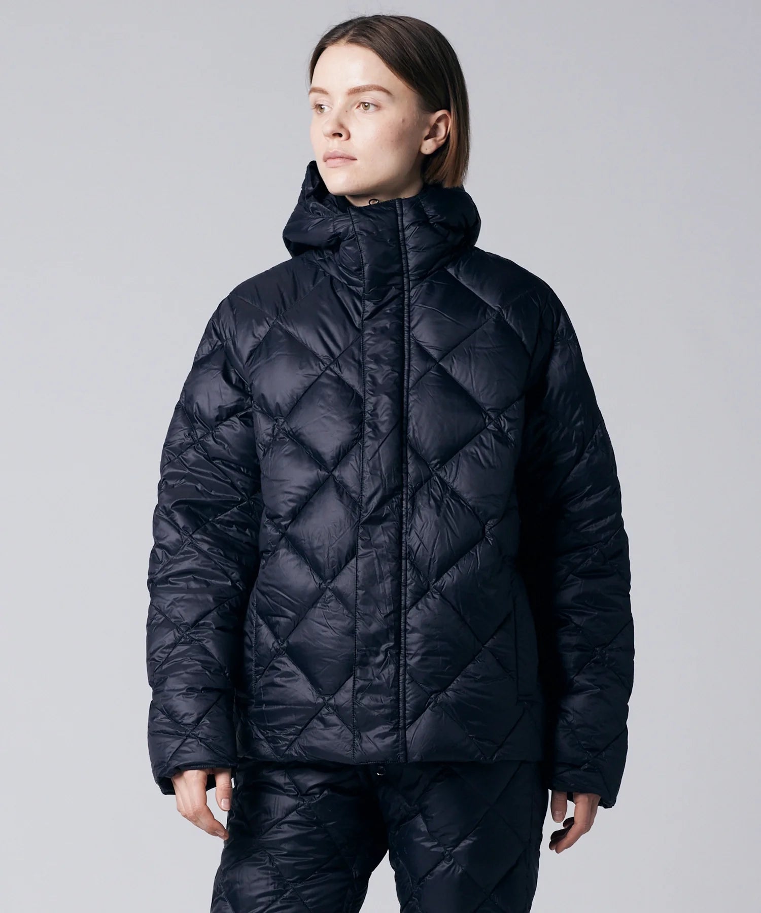 Made from high-density fabric with a smooth touch and filled with high-loft 800FP down, it features clean diamond quilting for a sleek and timeless finish.