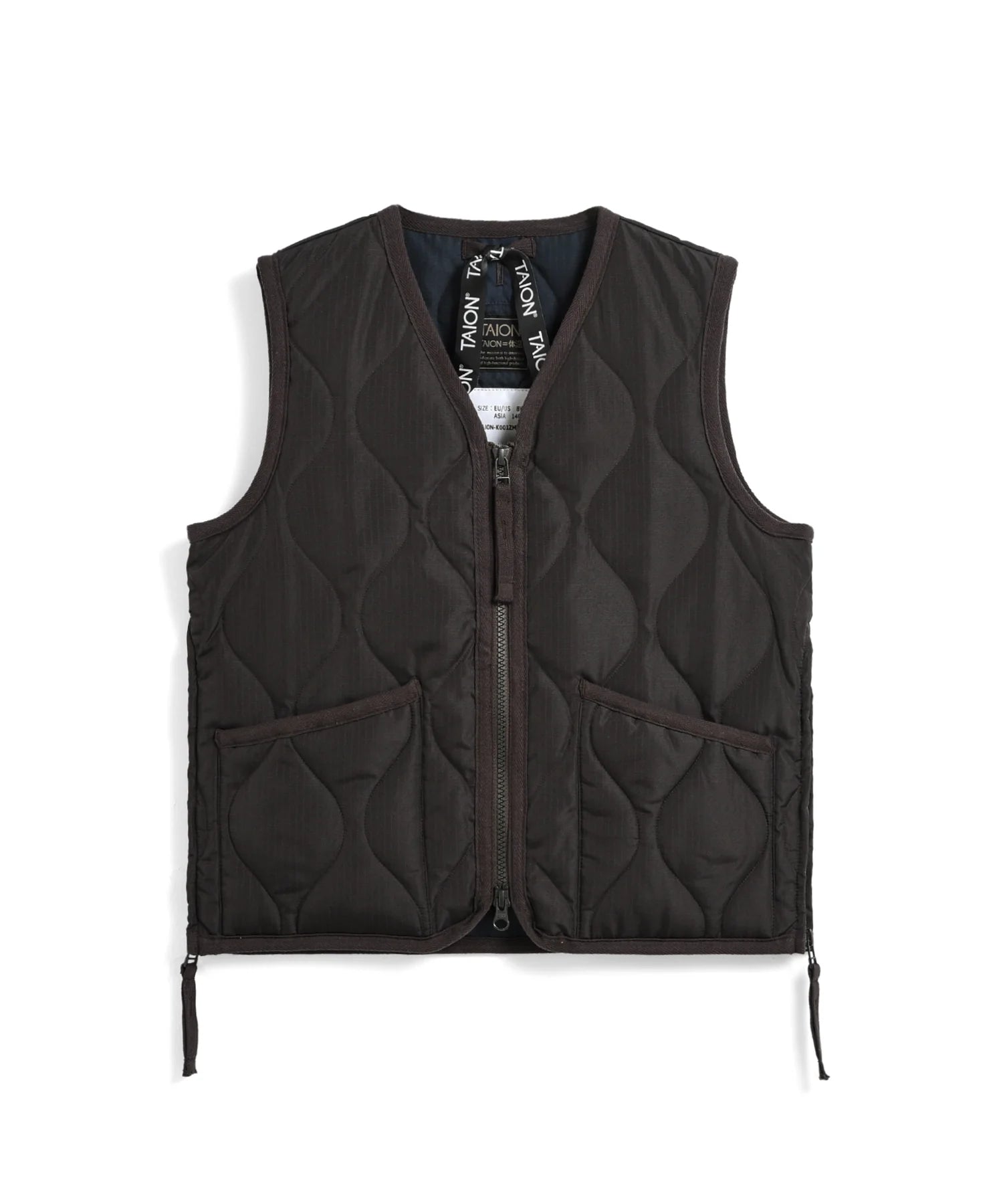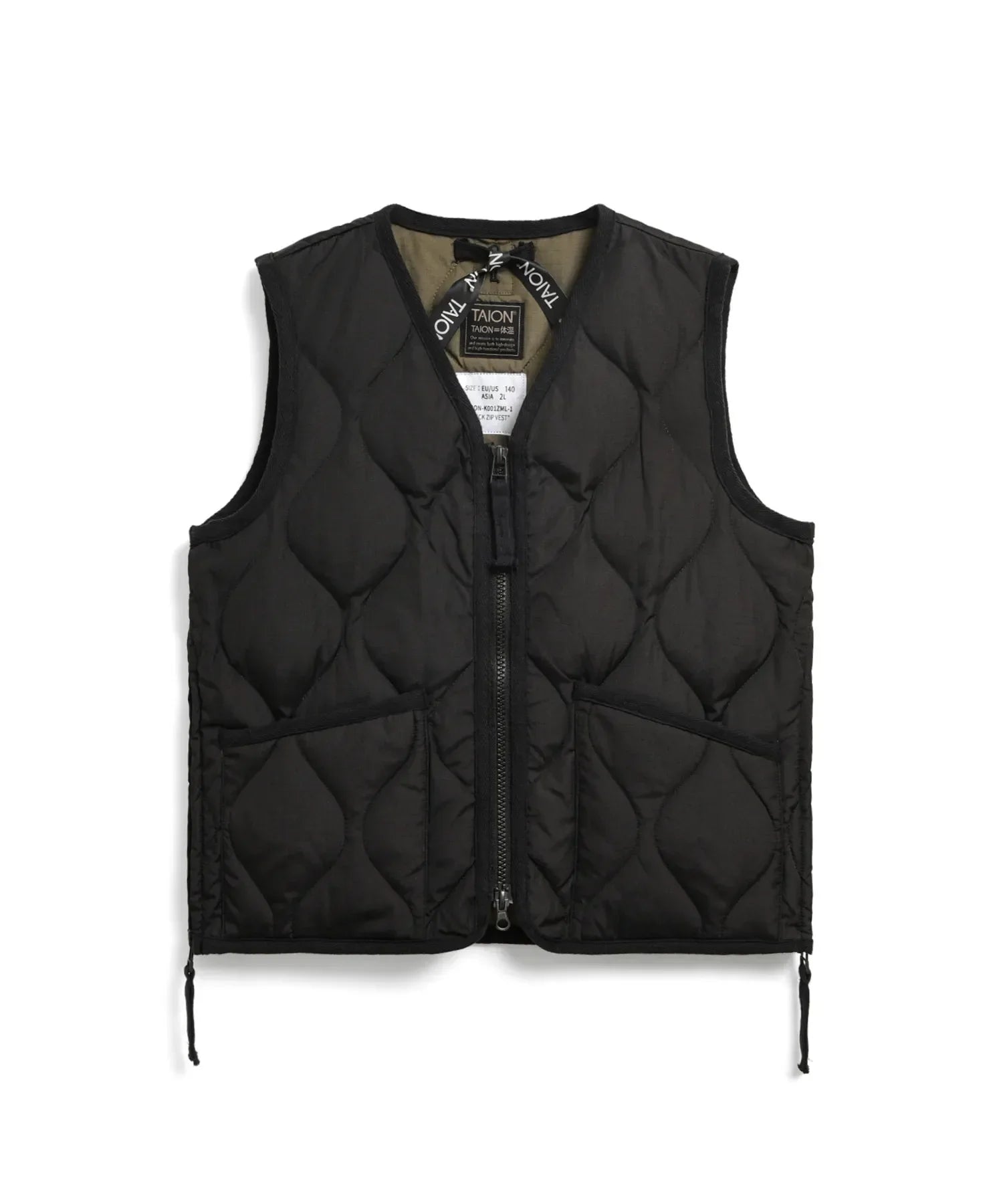 This military-inspired down vest from the TAION KIDS LINE is designed with warmth, comfort, and practicality in mind.