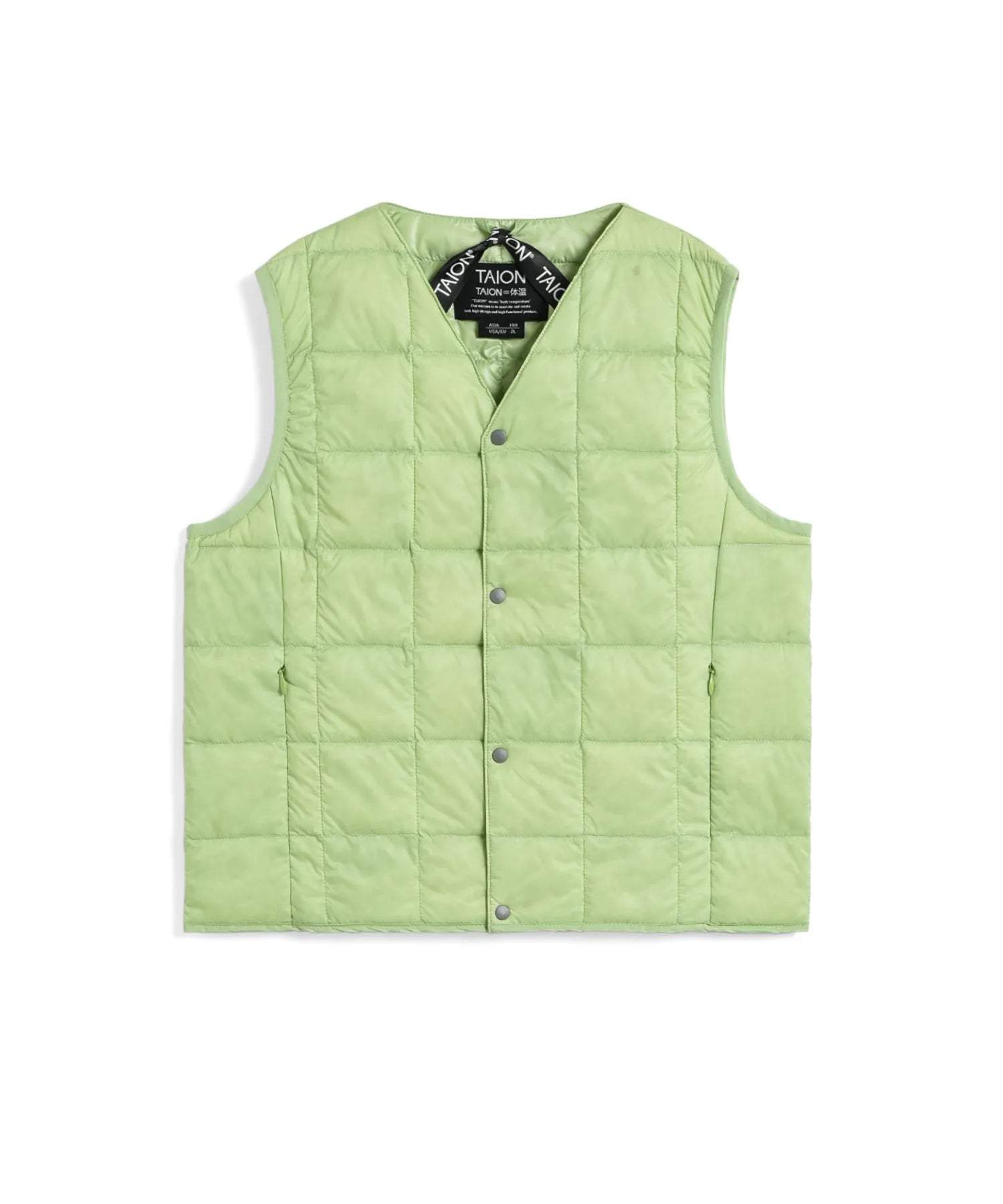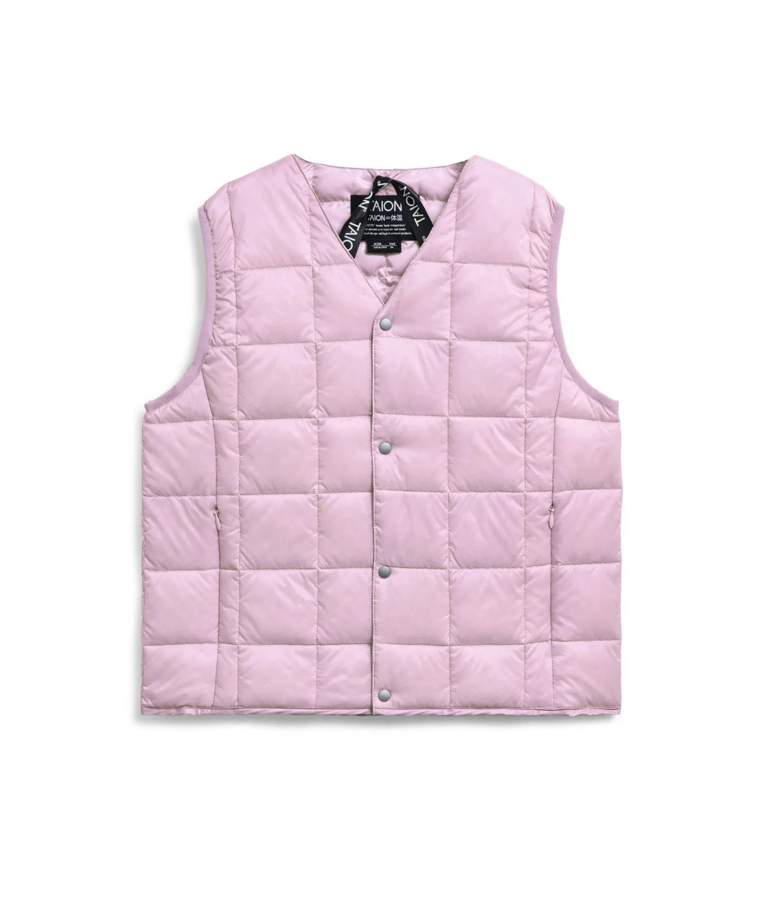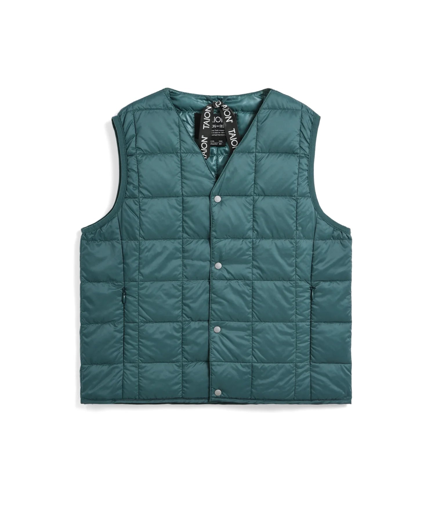 A signature piece from the TAION KIDS LINE, this inner down vest is designed with thoughtful details to make dressing easy and comfortable for children—featuring a front button closure and a neckline that keeps down fill from touching the skin.