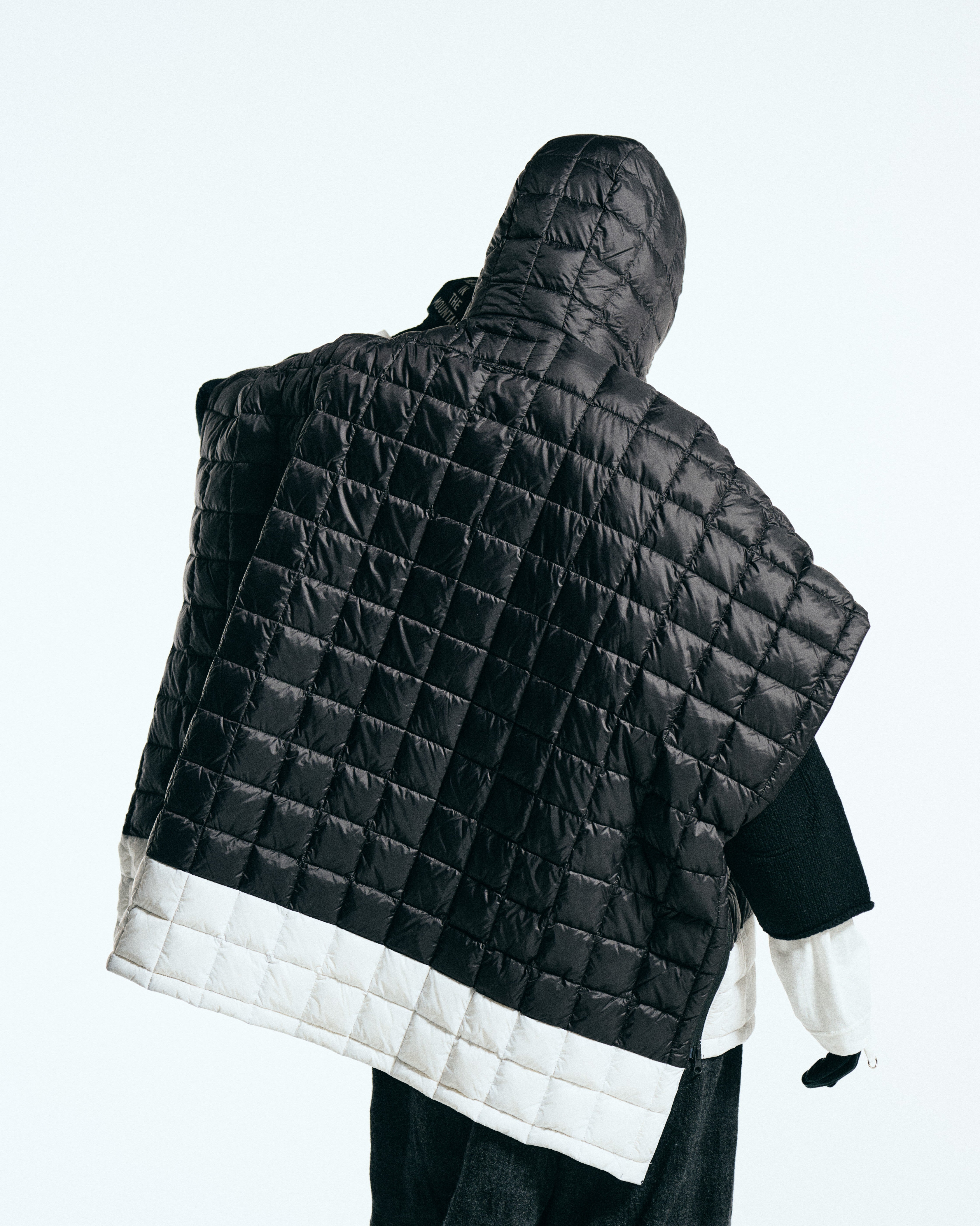 This limited-edition mountain down poncho, born from the collaboration between Mountain Research x TAION, is the ultimate expression of modern utility.