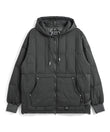 Designed with a hood for added warmth around the neck, a smooth front zipper for easy wear, kangaroo pockets, rivet detailing, and a hammer loop on the left side — all adding to its authentic workwear character.