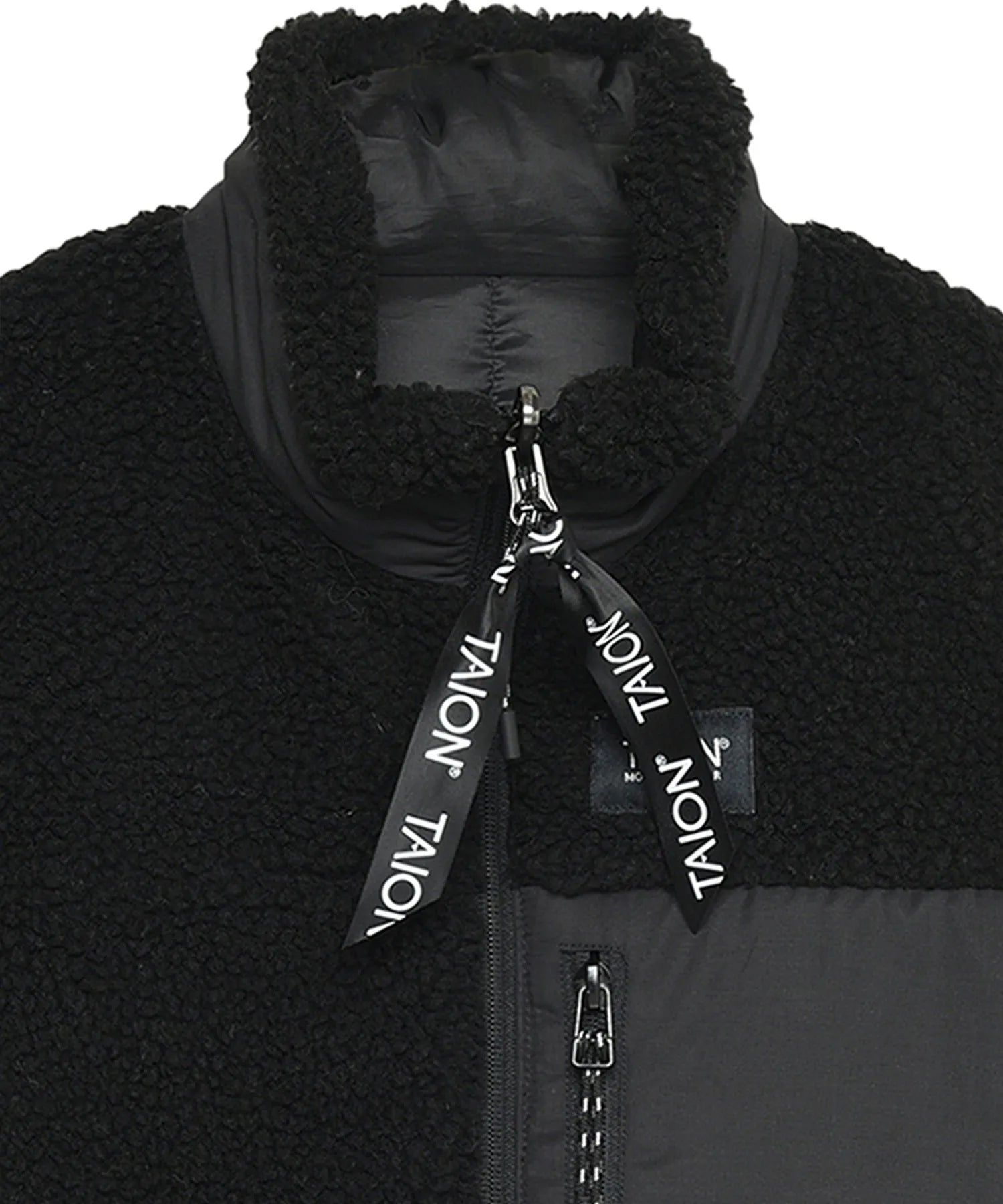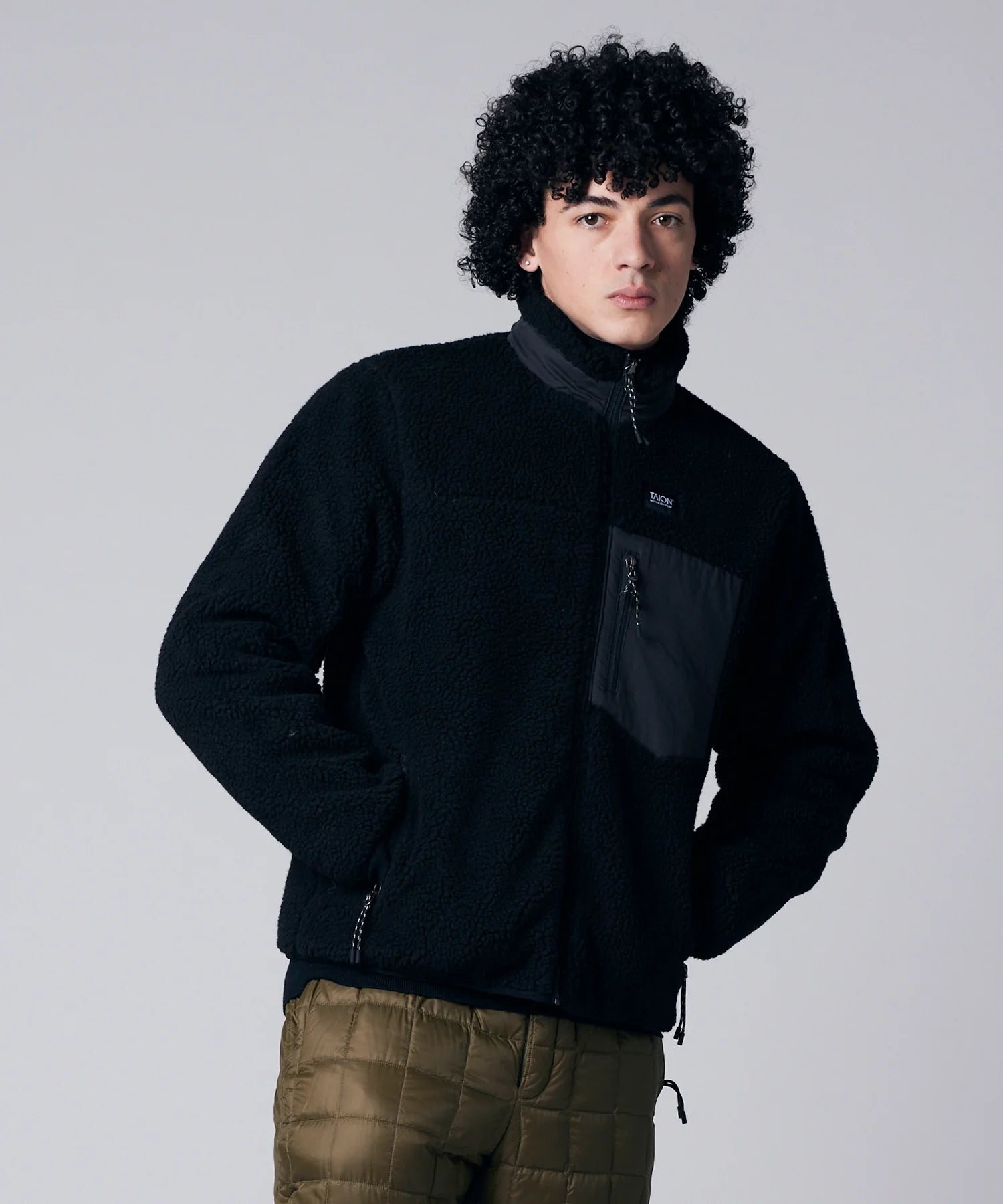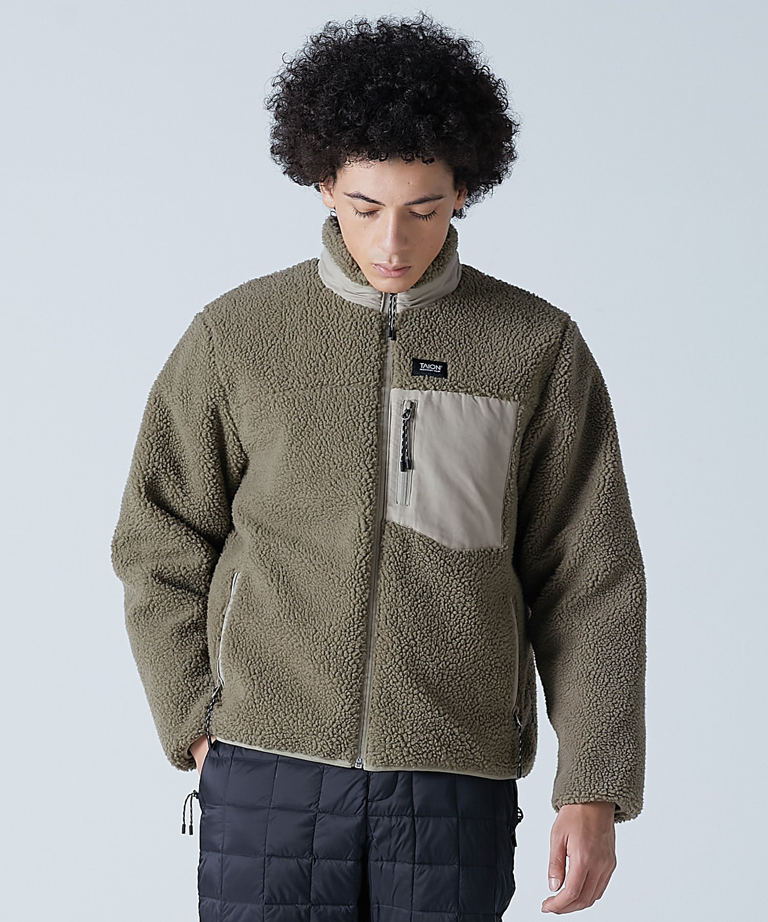 A popular piece from the MOUNTAIN LINE, this reversible “down × boa” high-neck jacket offers exceptional warmth and versatility.