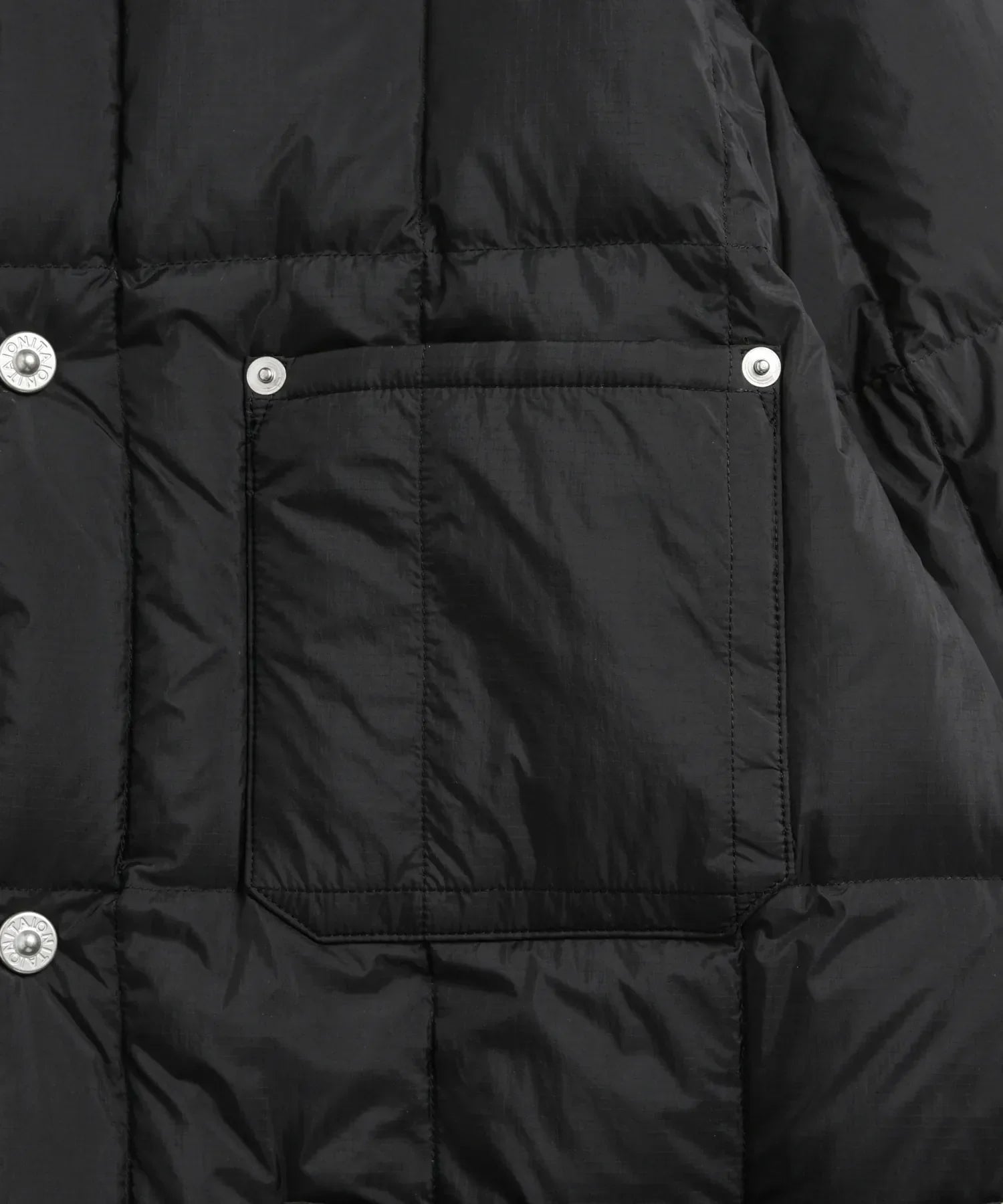It is filled with 800FP down for superior heat retention and features a vertical quilted finish.