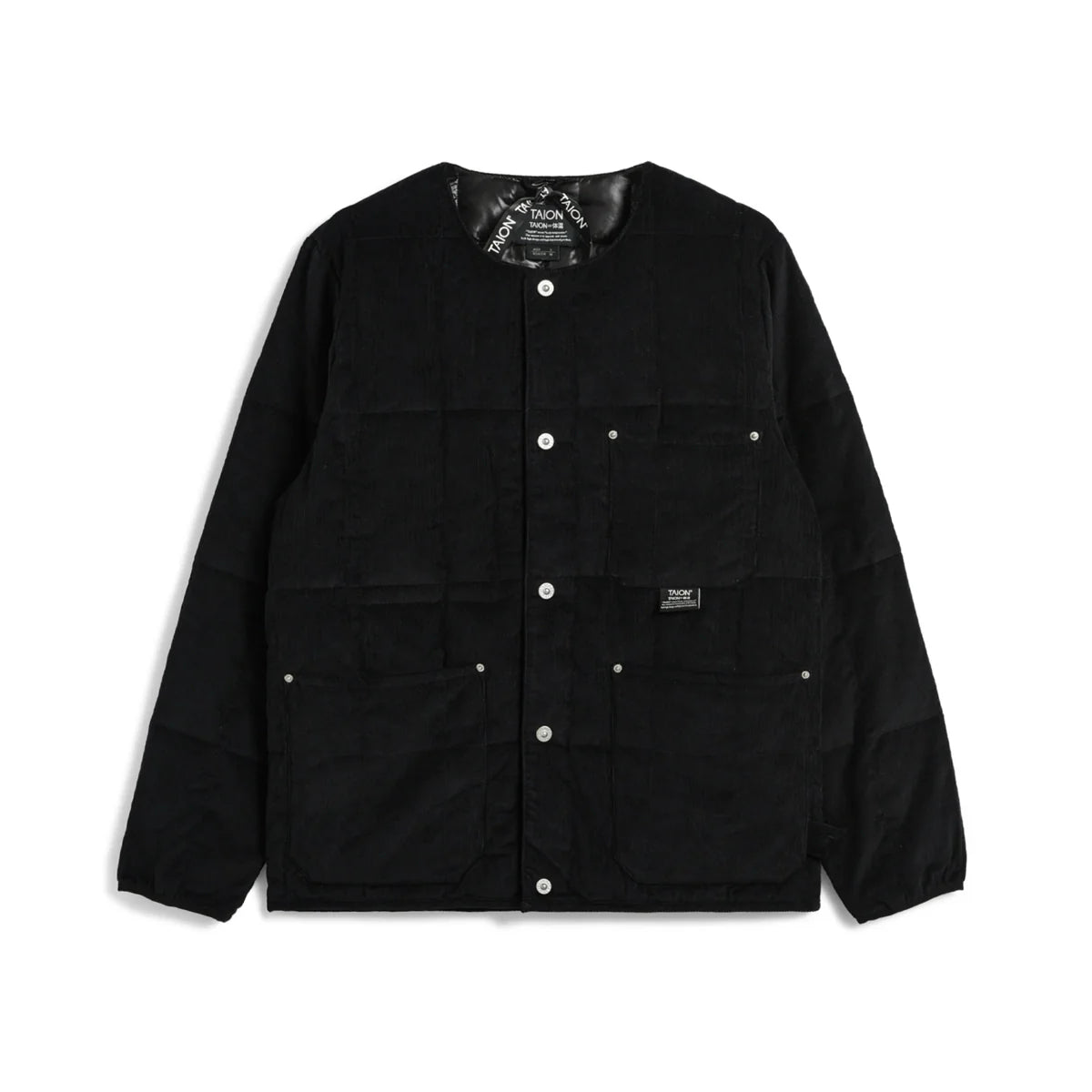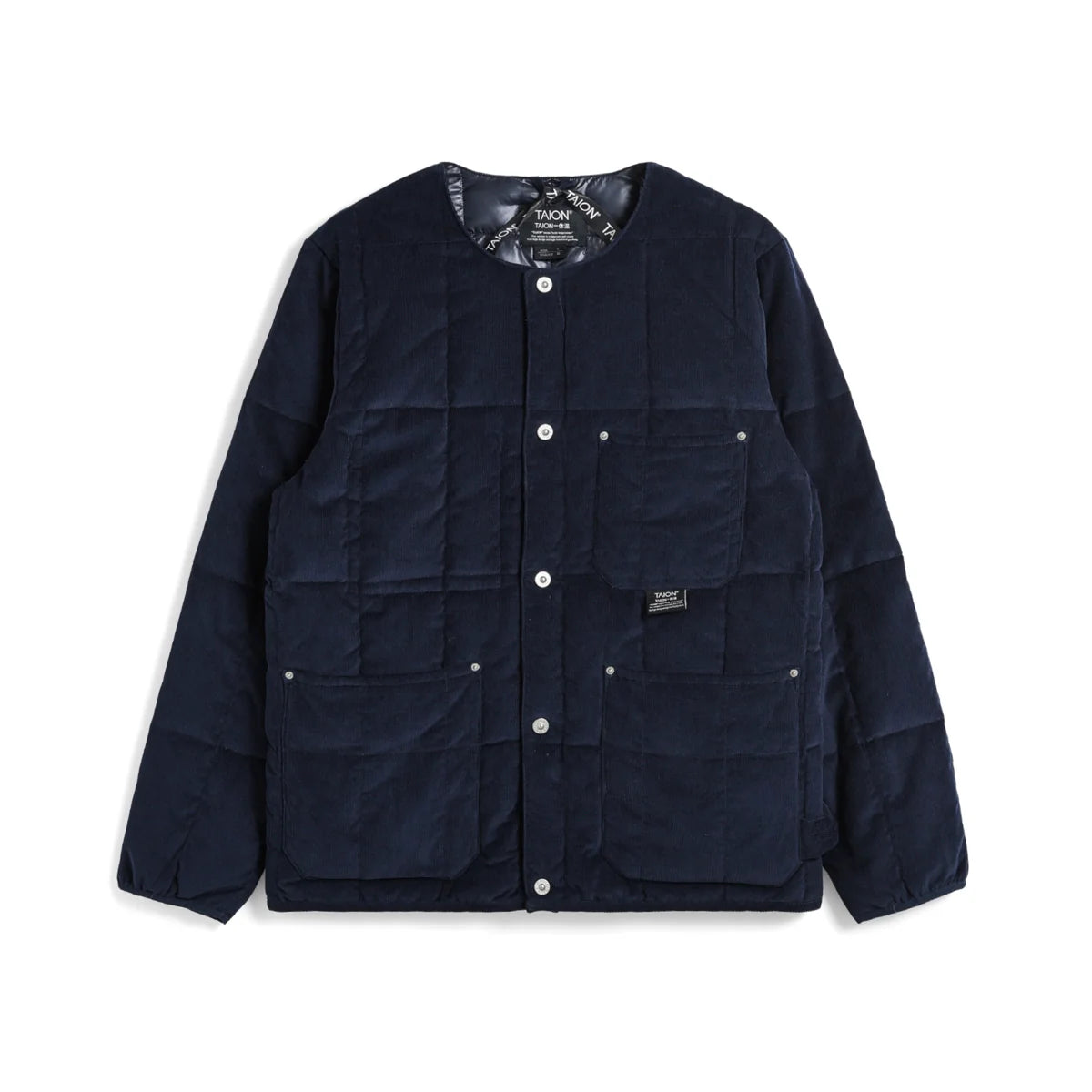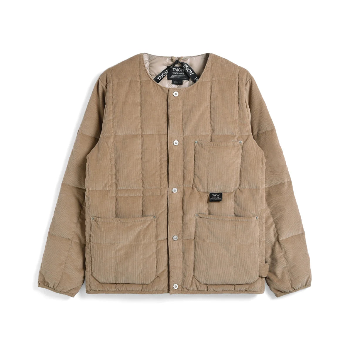 This V-neck down jacket combines warmth, texture, and durability, made from corduroy fabric with a soft, classic feel.