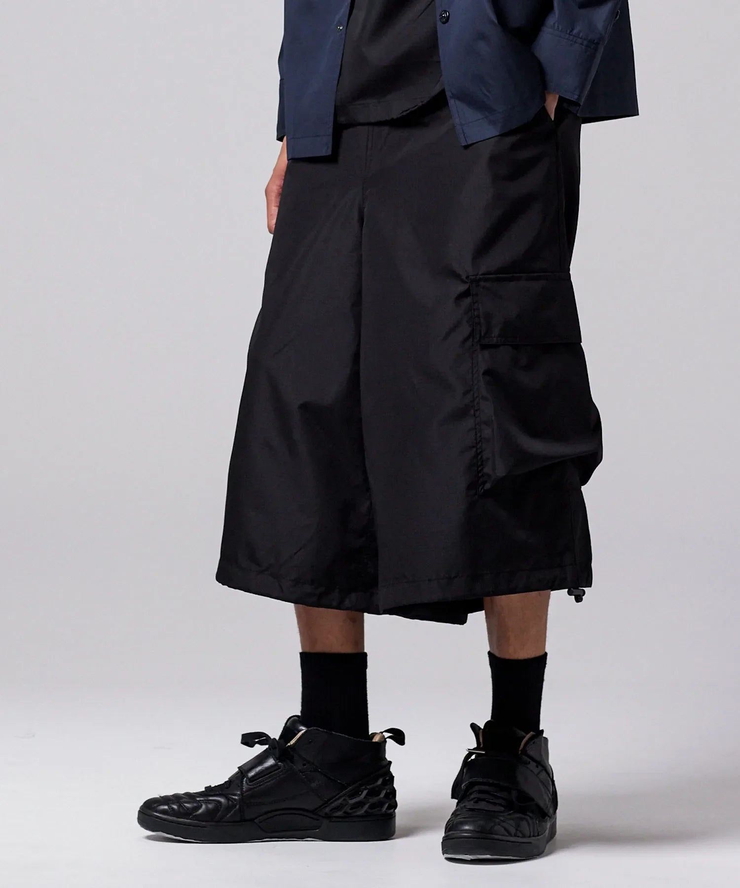 Non-down military wide cargo shorts with a voluminous silhouette.