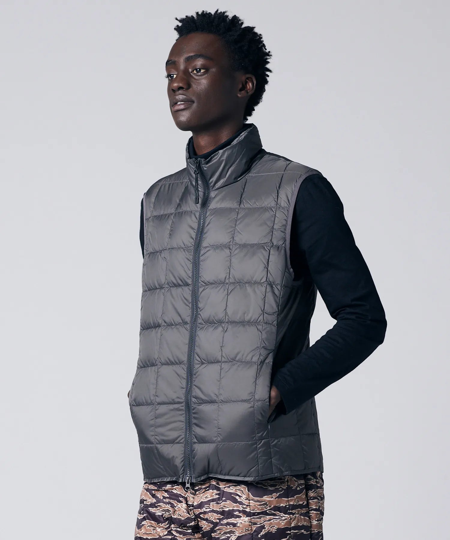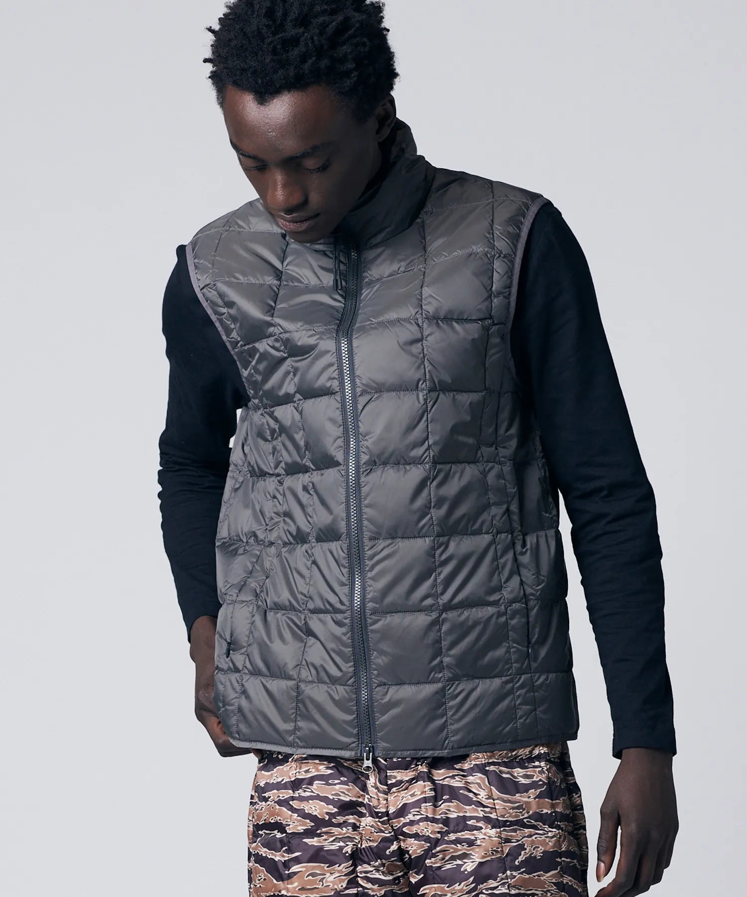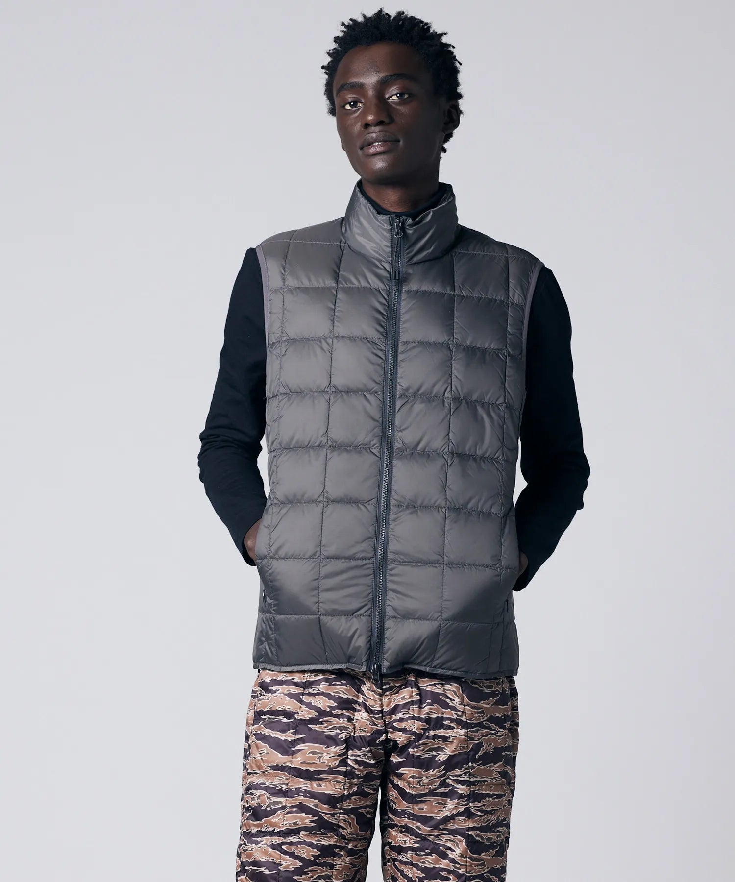 La gamme Basic Inner Down, emblématique de TAION, présente un design léger, chaud et polyvalent qui peut être facilement superposé sous des vestes et des manteaux, ou porté de façon décontractée sur un t-shirt, une chemise ou un sweat-shirt.