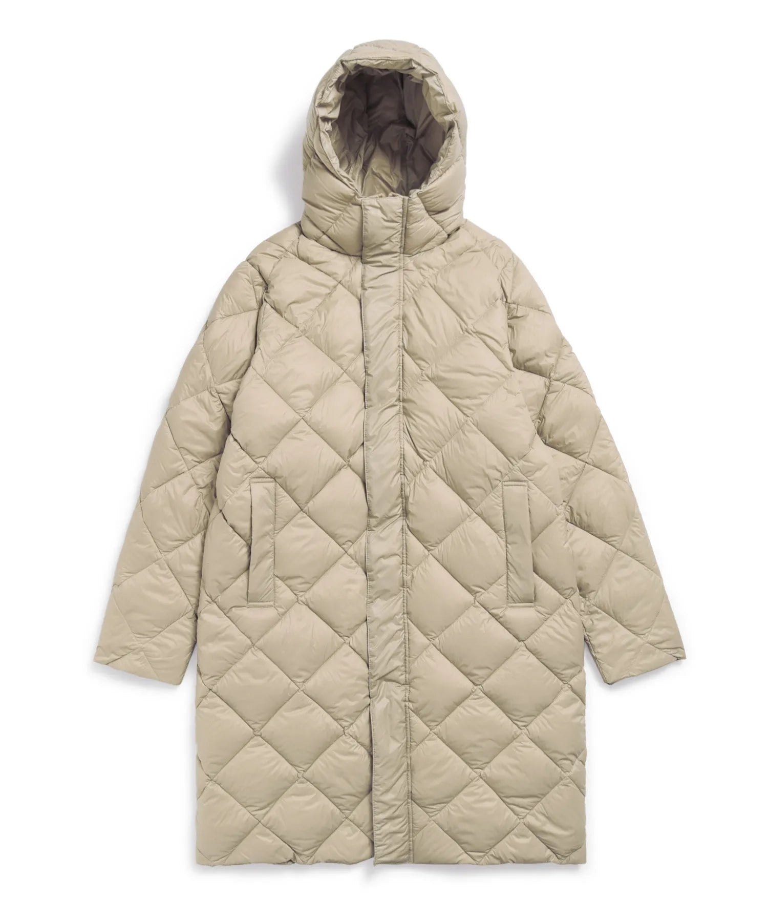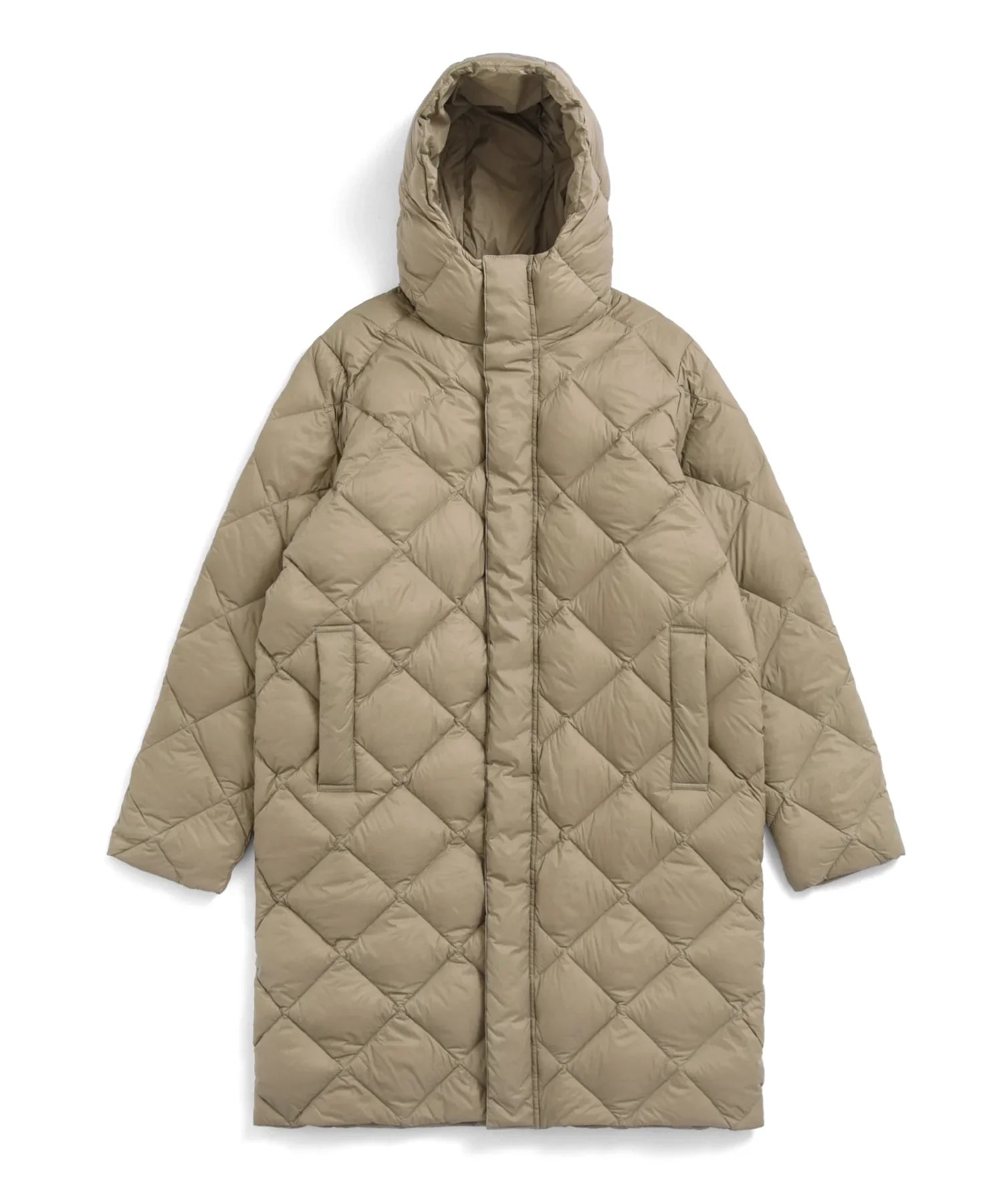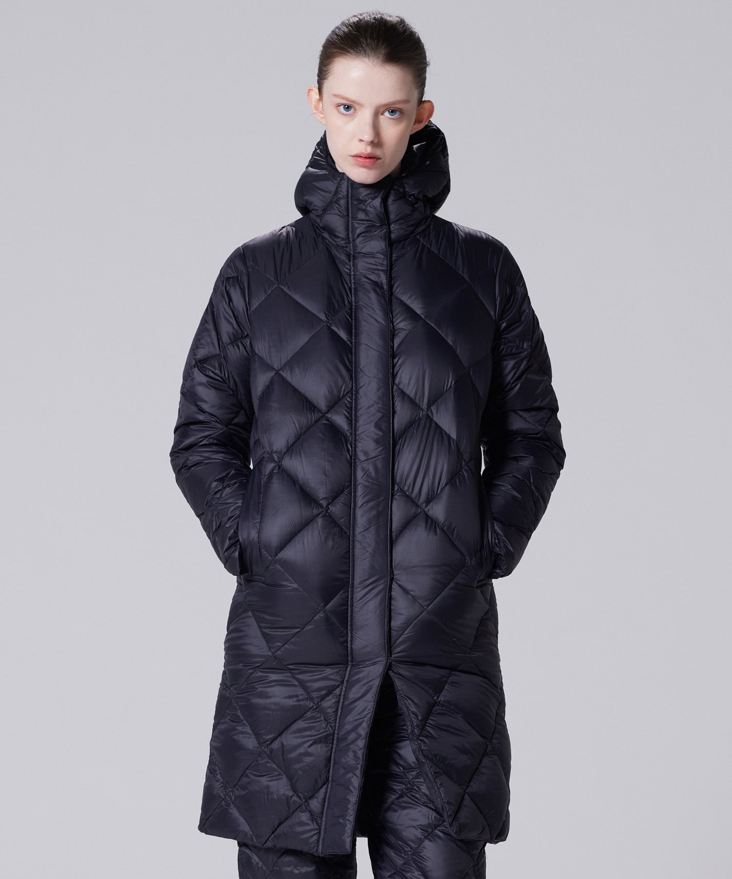 Realizzato in tessuto ad alta densità dalla mano liscia e imbottito con piumino 800FP ad alto spessore, presenta una trapuntatura a rombi pulita per una finitura semplice e senza tempo.