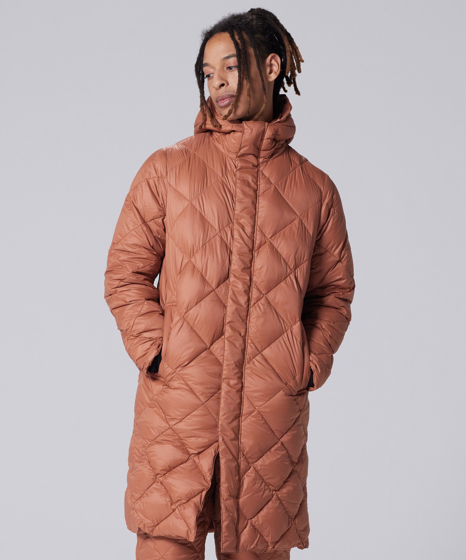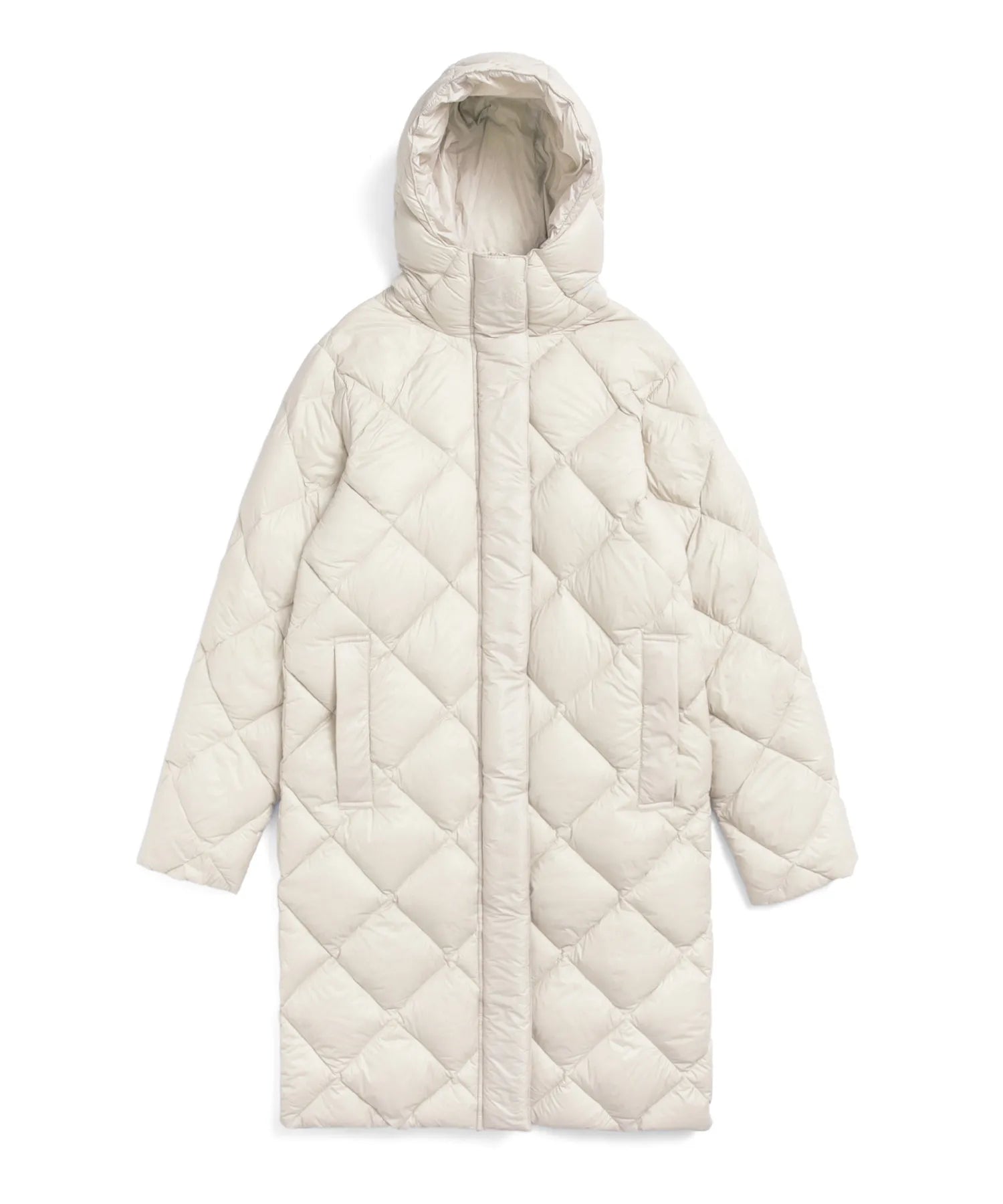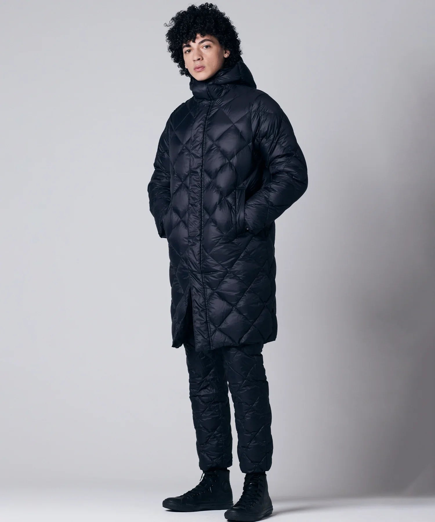 Realizzato in tessuto ad alta densità dalla mano liscia e imbottito con piumino 800FP ad alto spessore, presenta una trapuntatura a rombi pulita per una finitura semplice e senza tempo.